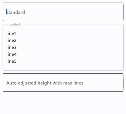 tb2 := ft.TextField(label="Disabled", disabled=True, value="First name"),